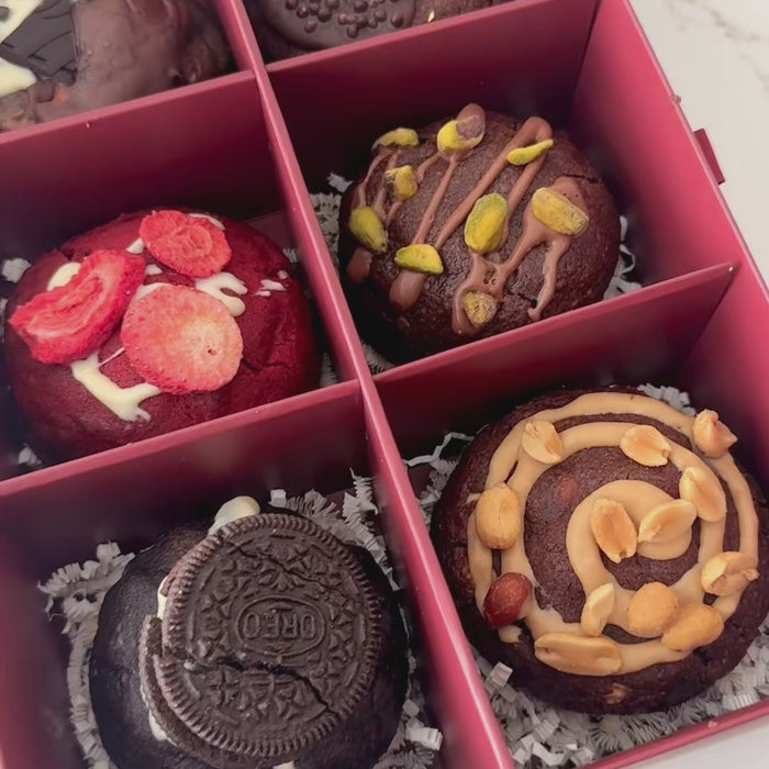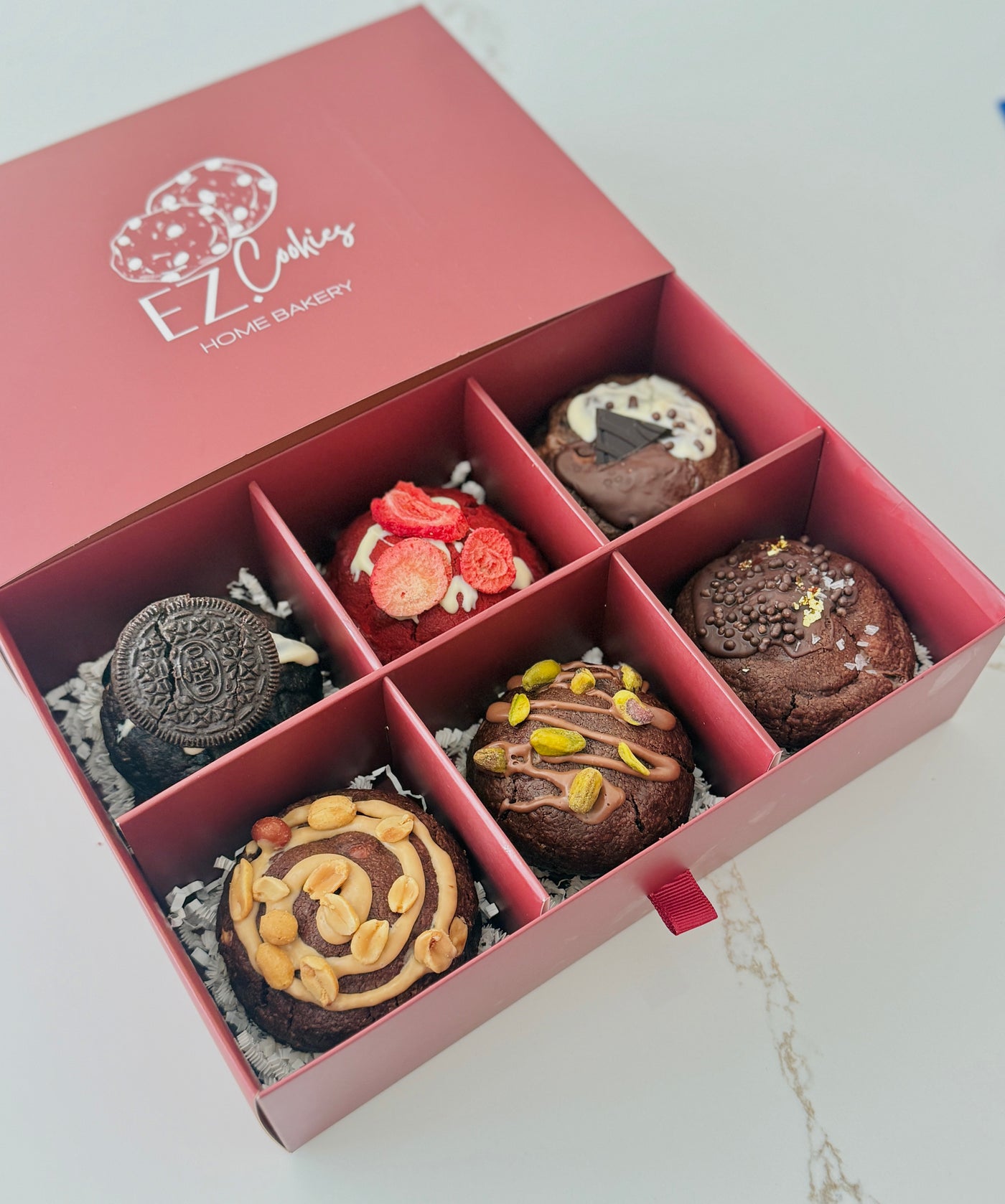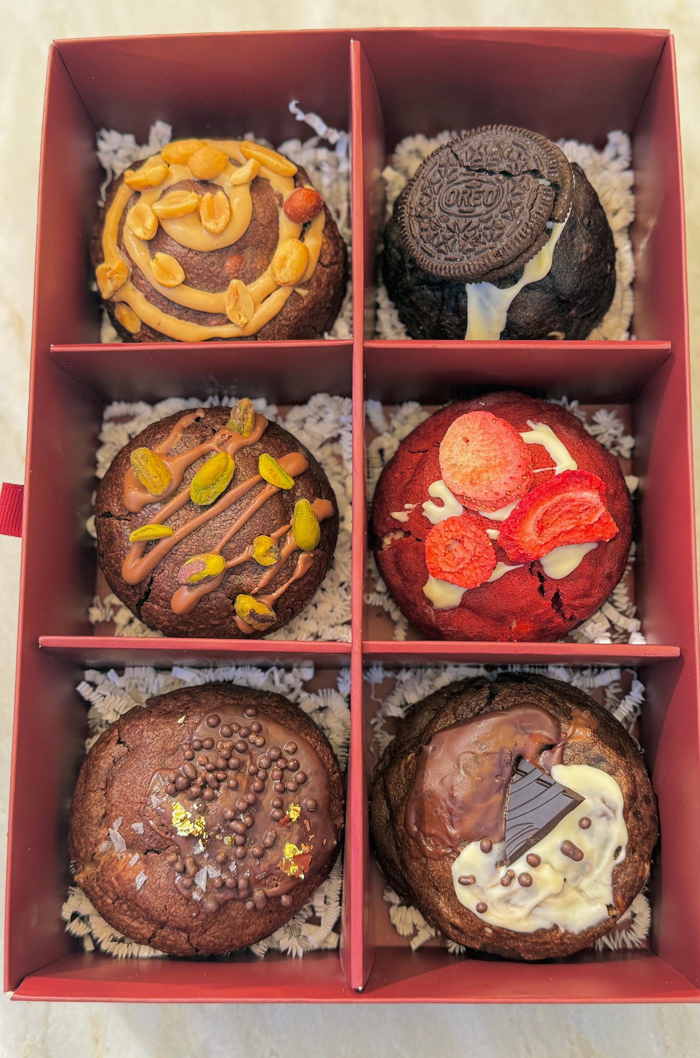 This box brings together six of our most loved creations — thoughtfully selected to showcase depth, balance, and elegance. Each cookie is baked fresh to order in small batches, using premium ingredients and meticulous technique, then carefully arranged for a truly elevated tasting experience.